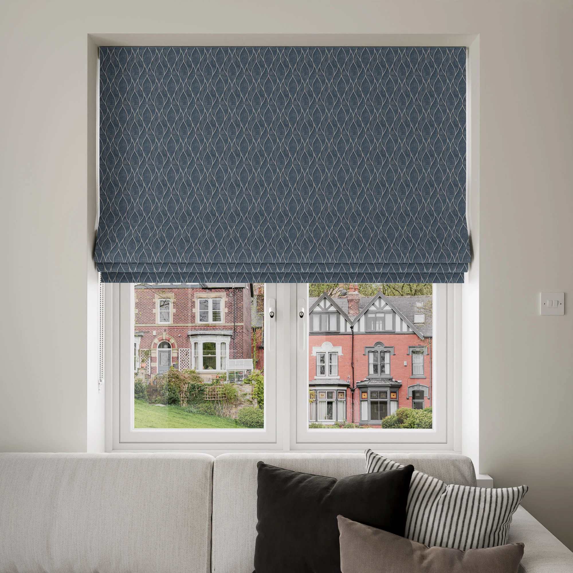 From classic plains to bold patterns, our roman blinds add a touch of luxury to any room. Available with blackout lining, interlining and motorised options. Made to measure and professionally fitted.